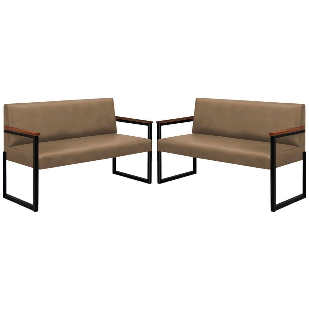 Conjunto 2 Sofás De 2 Lugares Niterói Couro Bege Em Metal Preto