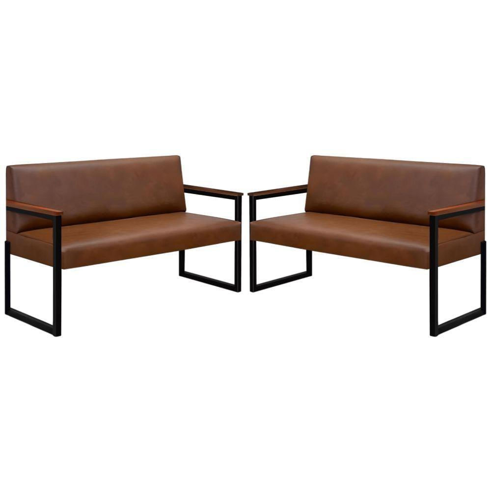 Conjunto 2 Sofás De 2 Lugares Niterói Couro Marrom Em Metal Preto