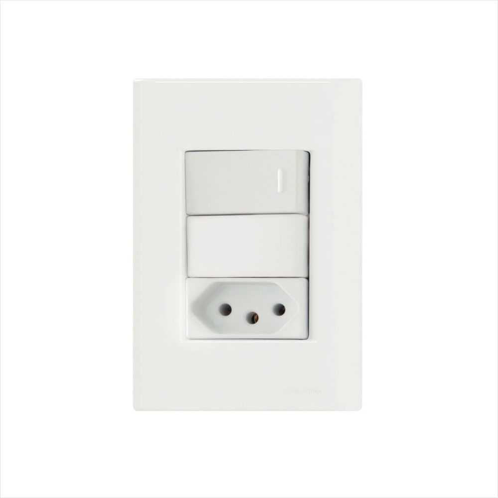 Conjunto 4x2 com 1 Interruptor Simples 10 A 250 V e 1 Tomada 2P+T 20 A 250 V Tramontina Giz Branco
