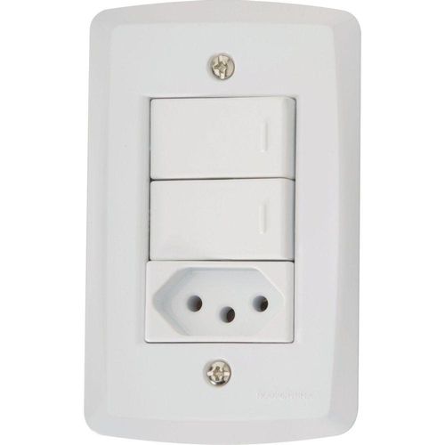 Conjunto 4x2 com 2 Interruptores Paralelos 10 A 250 V e 1 Tomada 2P+T 20 A 250 V Tramontina Lux2 Branco