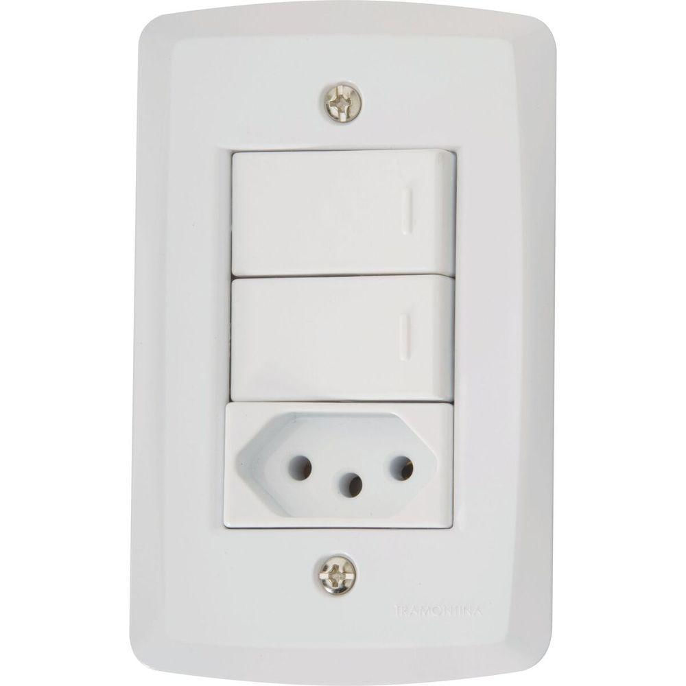 Conjunto 4x2 Com 2 Interruptores Simples 10 A 250 V E 1 Tomada 2p+t 10 A 250 V Tramontina Lux2 Branco