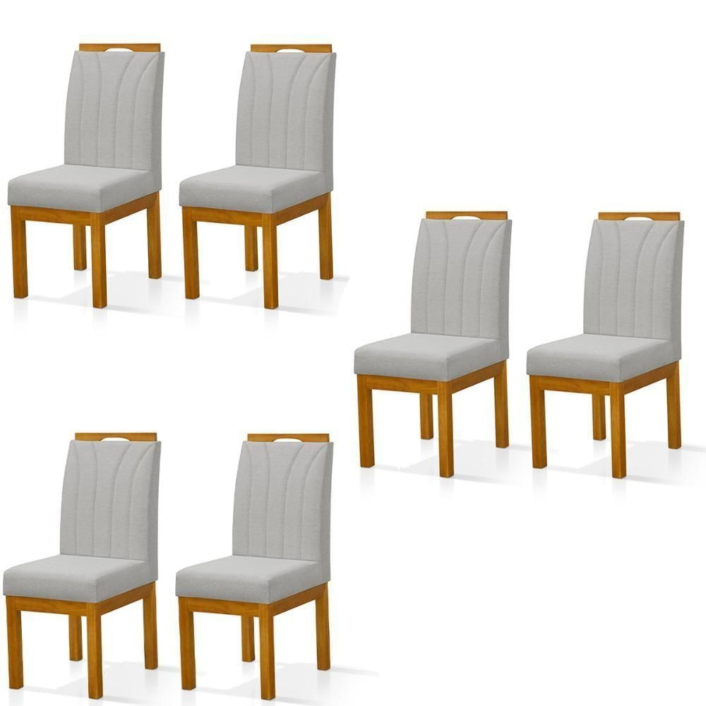 Conjunto 6 Cadeiras Blend Em Linho Com Pés De Madeira Maciça Cinza Claro