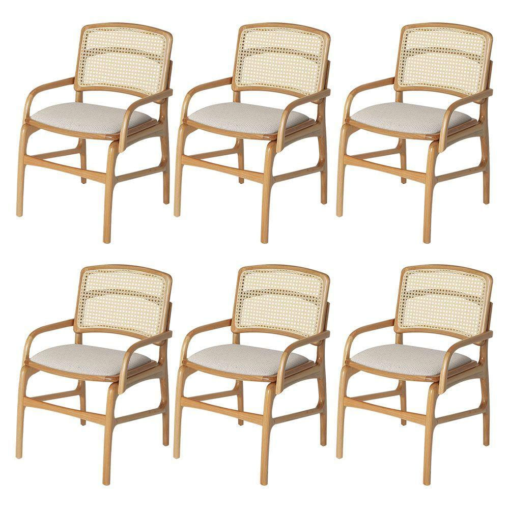 Conjunto 6 Cadeiras De Jantar Florença Em Madeira Jequitibá Natural Braço Encosto Palha Linho Bege