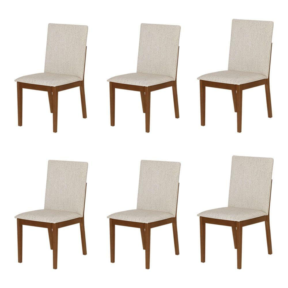 Conjunto 6 Cadeiras De Jantar Sofia Jequitibá Nozes Encosto Premium Linho Bege