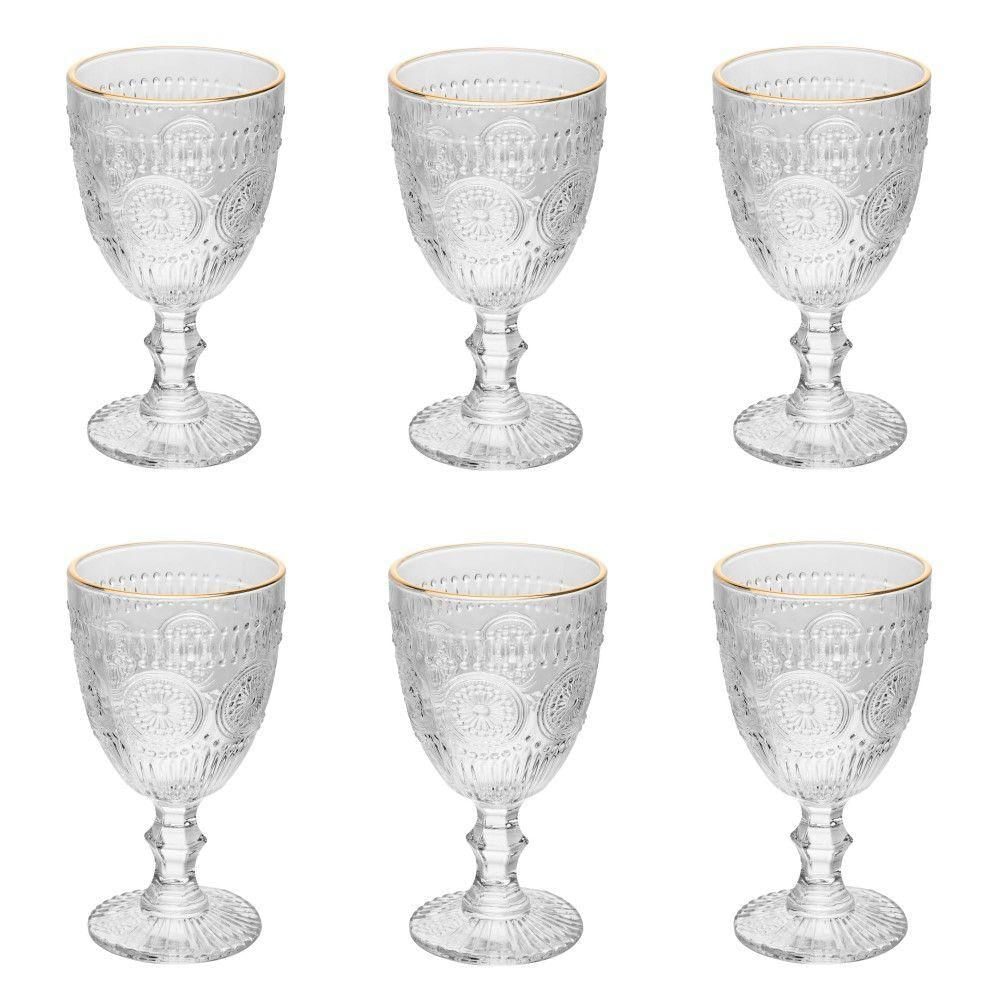 Conjunto 6 Taças De Vidro Com Fio De Ouro 320 Ml Mandala Wolff