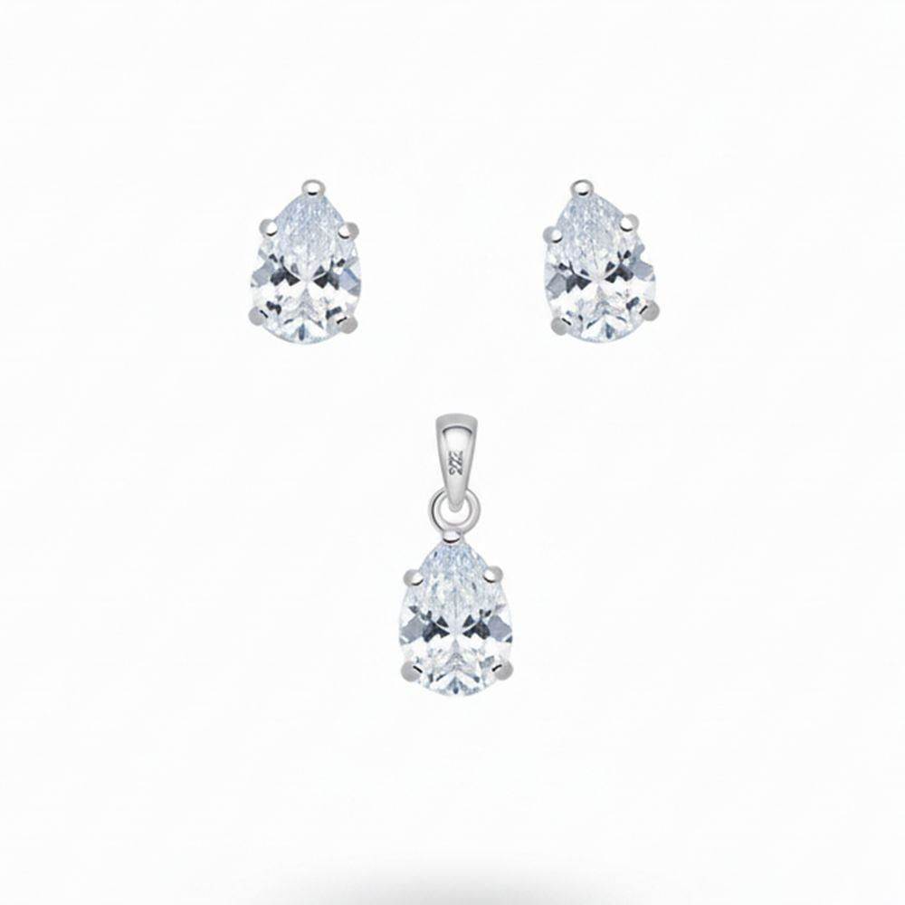 Conjunto Amaré Prata 925 Com Pingente E Brincos Gota Zircônia Joias Elegantes E Versáteis Branco