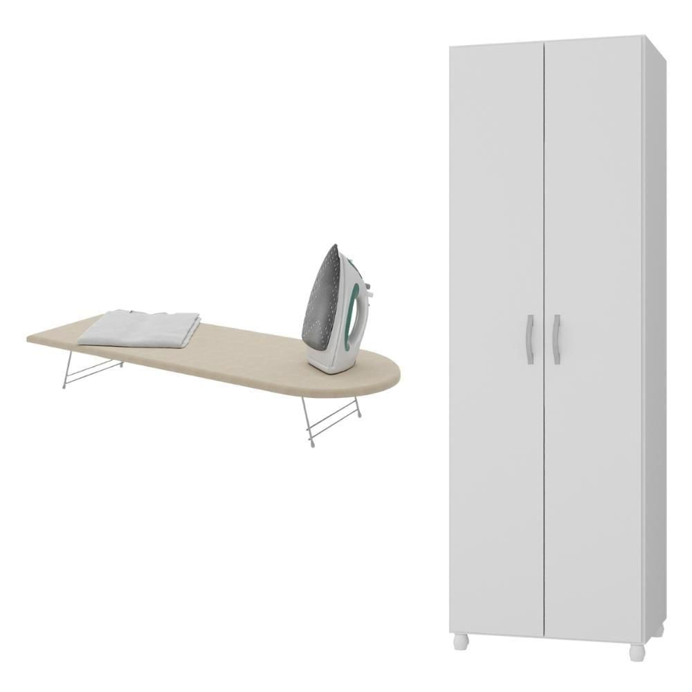 Conjunto Armário Multiuso Lavanderia Com Tábua De Passar 2 Portas Multimóveis Mx5064 Branco/bege