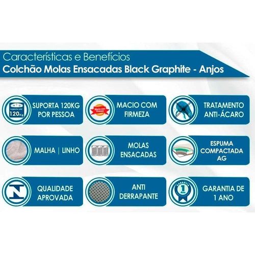 Conjunto Box Baú Solteiro Colchão Molas D Angelis Anjos Ensacadas Black Graphite + Base Crc Courano Black (88x188)