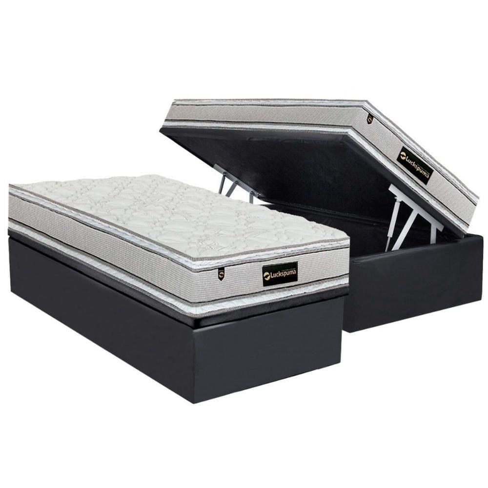 Conjunto Box Baú Solteiro Colchão Molas Luckspuma Ensacadas Lucksfaction Plus Gray + Base Crc Suede Gray (88x188)