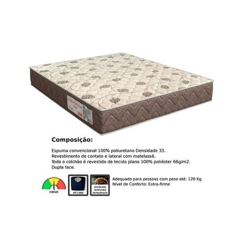 Dimensões(Cm): Comprimento(Profundidade): 198cm x Largura: 158cm x Altura: 32cm Vantagens Extras de Colchão - Ecologicamente Correto - c/ Sistema Polyframe - Manta Acrílica - EPS Tipo de Pillow - Pillow Top Americano Tecido com Tratamento do Colchão - AntiÁcaro e AntiFungo Bordado do Revestimento do Colchão - Localizado Forração Revestimento do Colchão - Malha de Alta Qualidade Forração do Revestimento Inferior do Colchão - Antiderrapante Tecido de Revestimento da Faixa Lateral do Colchão - Decorativa Modo de Utilização do Colchão - One Side Camadas Interna do Estofamento de Espuma do Colchão - Alta Qualidade - HR de Alta Resiliência - Gel Tipo de Mola do Colchão - Ensacadas MasterPocket Nível de Firmeza do Colchão - Macio c/ Firmeza Peso Máximo Suportado do Colchão - 150 kg Certificação de Qualidade do Colchão - Qualidade Aprovada - INMETRO - Qualidade Costa Rica Nossa Avaliação do Colchão - Qualidade Excelente Tempo de Garantia do Colchão - 12 meses