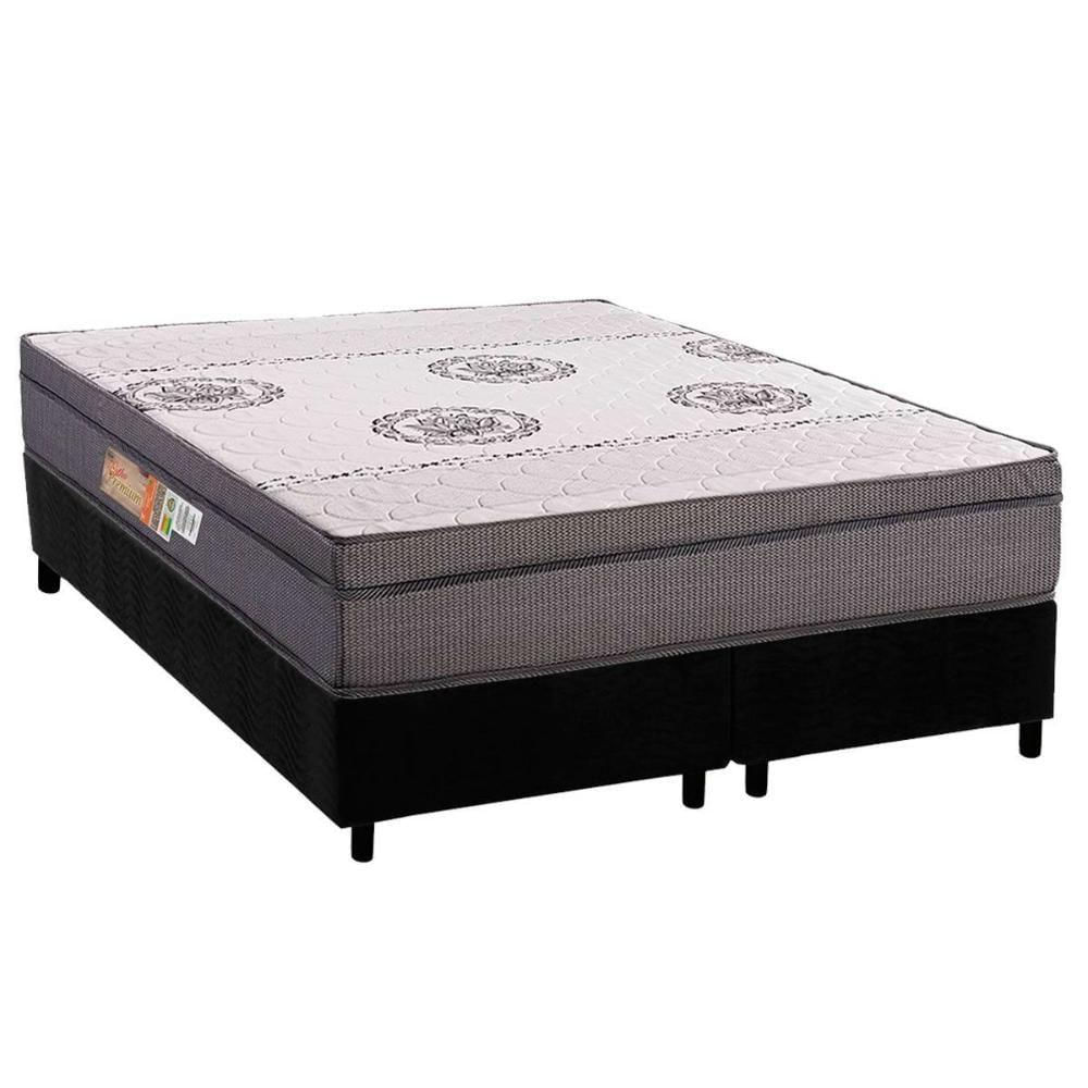 Conjunto Box Queen: Colchão Espuma Polar D28 Orthopremium Grey + Base Crc Suede Black (158x198)