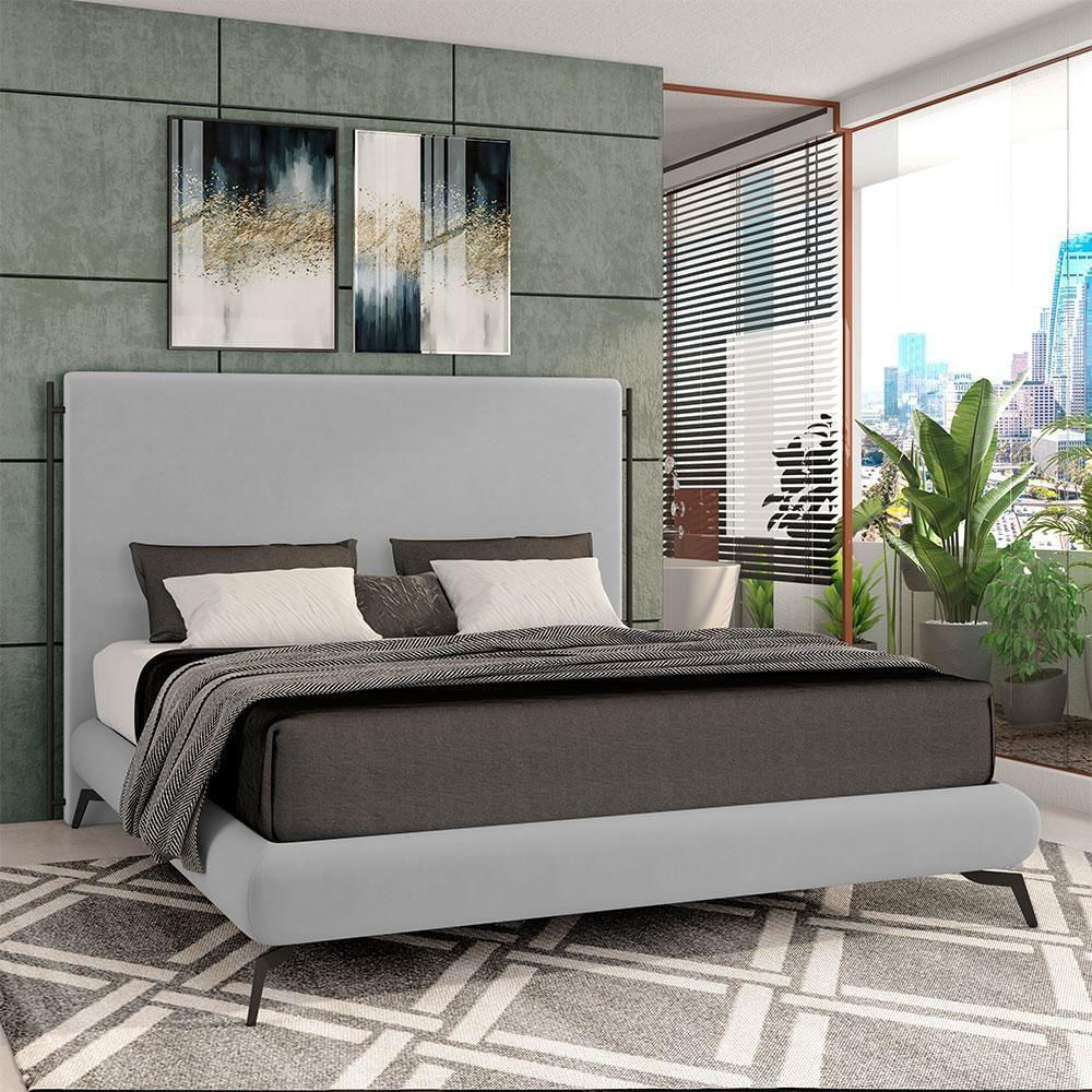 Conjunto Cabeceira E Base Para Colchão Queen Bezos Com Pés Em Alumínio Veludo Cinza G91 - Gran Belo