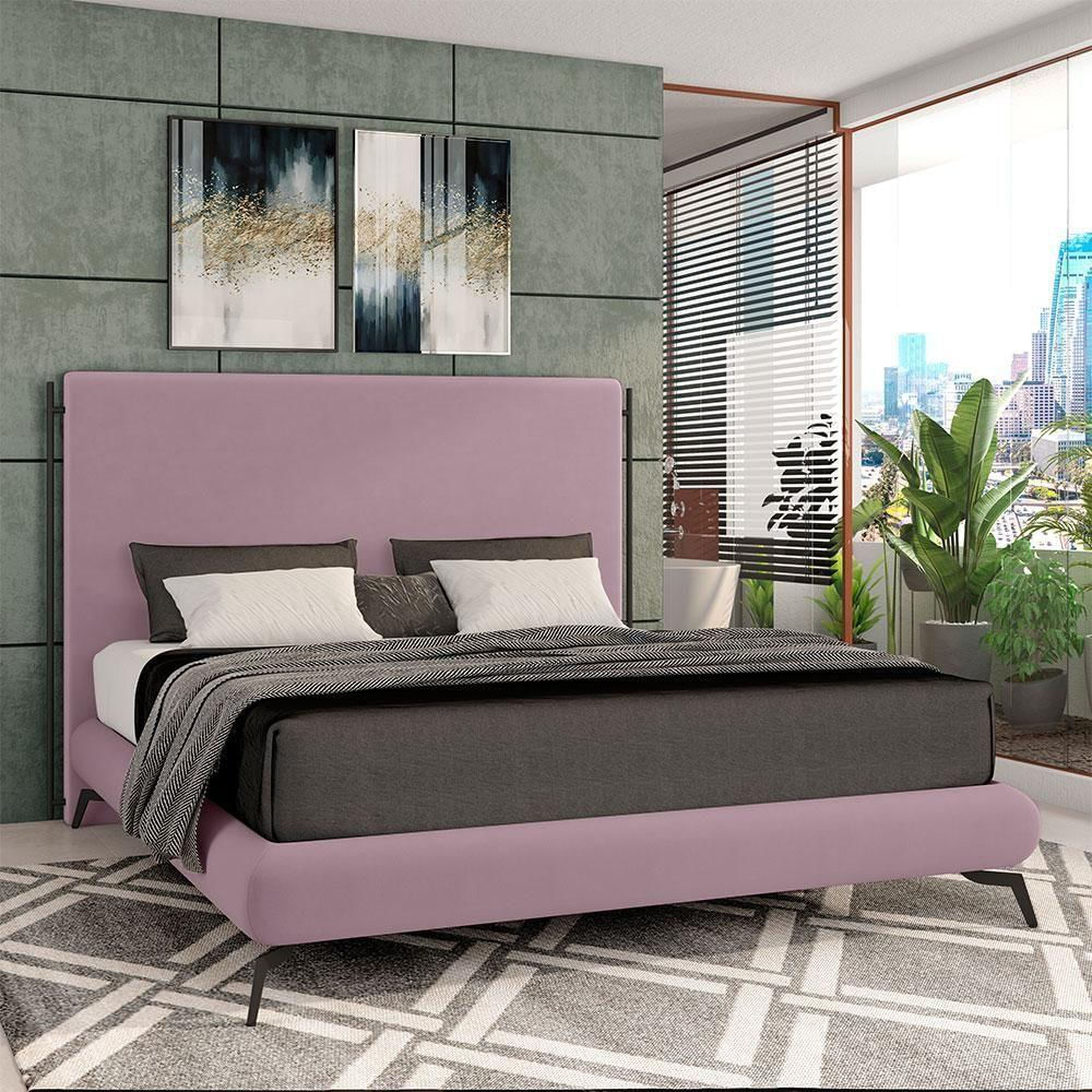 Conjunto Cabeceira E Base Para Colchão Queen Bezos Com Pés Em Alumínio Veludo Rosê G91 - Gran Belo