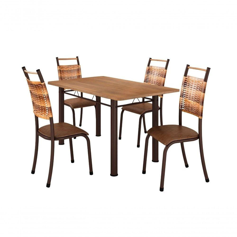 Conjunto Chicago 04 Cadeiras Com Base Paraná Bm Tubulares Bp Noce Oro-ratan Carvalho-courino 121