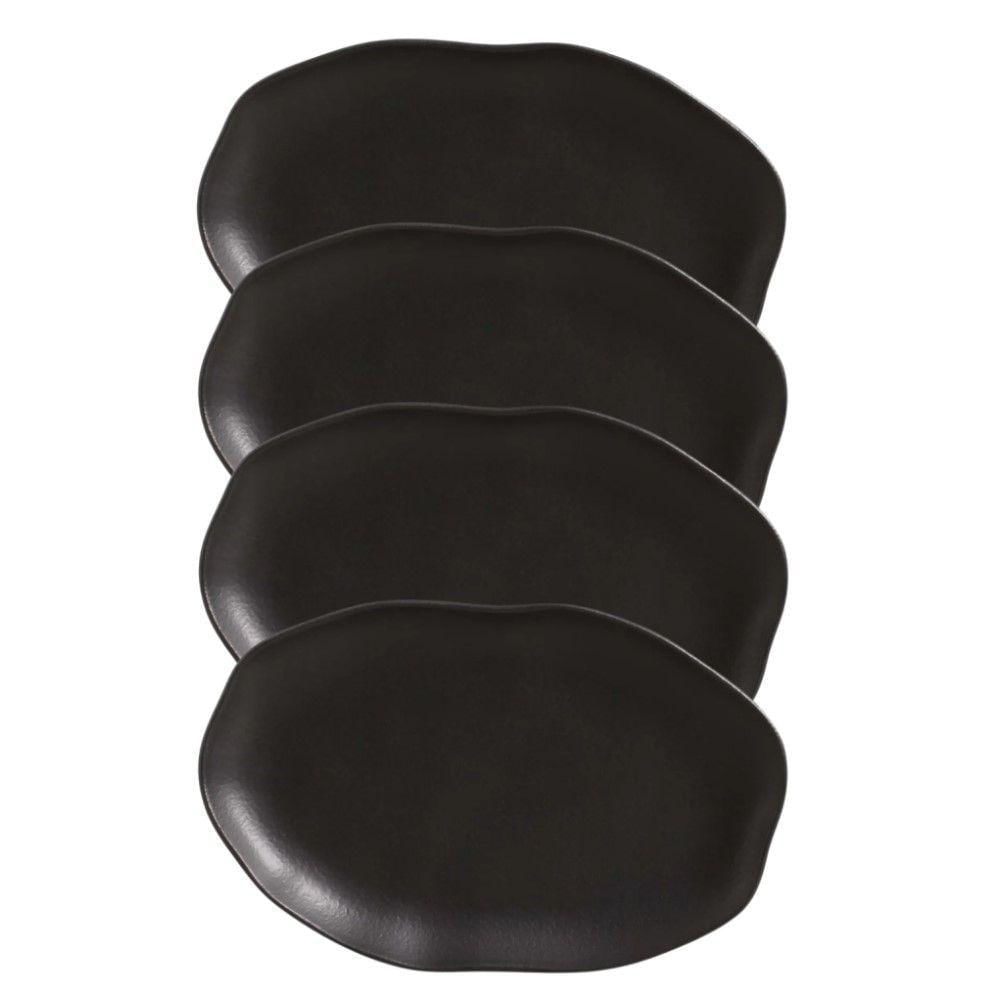 Conjunto Com 04 Travessas Oval Rasa Média 30x20 Cm Orgânico Preto Matte Porto Brasil
