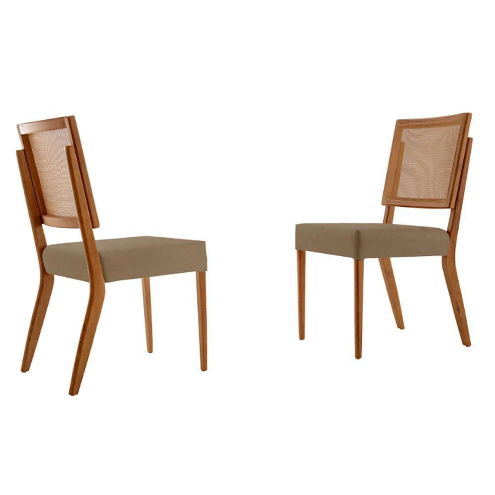 Conjunto com 2 cadeiras Aila em Madeira Macica para Sala de Jantar Moderna Mobilia O conjunto de cadeiras Aila e a combinacao perfeita de conforto e estilo classico para qualquer espaco. Com sua estrutura robusta em madeira , estas cadeiras exalam uma sensacao de durabilidade e elegancia atemporal. Os encostos em teliha adicionam um toque de charme rustico, enquanto proporcionam apoio ergonomico para uma experiencia de assento mais confortavel. Os assentos estofados oferecem um conforto excepcional, adicionando uma camada de maciez que convida a relaxar e desfrutar de momentos agradaveis a mesa. Seja na sala de jantar, na cozinha ou em qualquer ambiente de convivio, o conjunto de cadeiras Aila eleva instantaneamente o visual do espaco, adicionando um toque de sofisticacao e conforto. Combinando funcionalidade e beleza, estas cadeiras sao a escolha perfeita para quem busca um estilo classico e atemporal em seu lar.