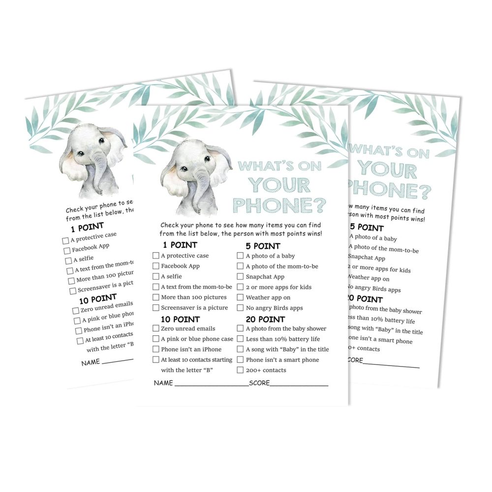 Conjunto com 50 Jogos para Chá de Bebê, Jogo Alfabeto do Bebê ABC com Elefante, Unissex, Suprimentos para Festa - Inkdotpot 12,7 Cm × 17,78 Cm / Branco - O Que Tem no Seu Celular