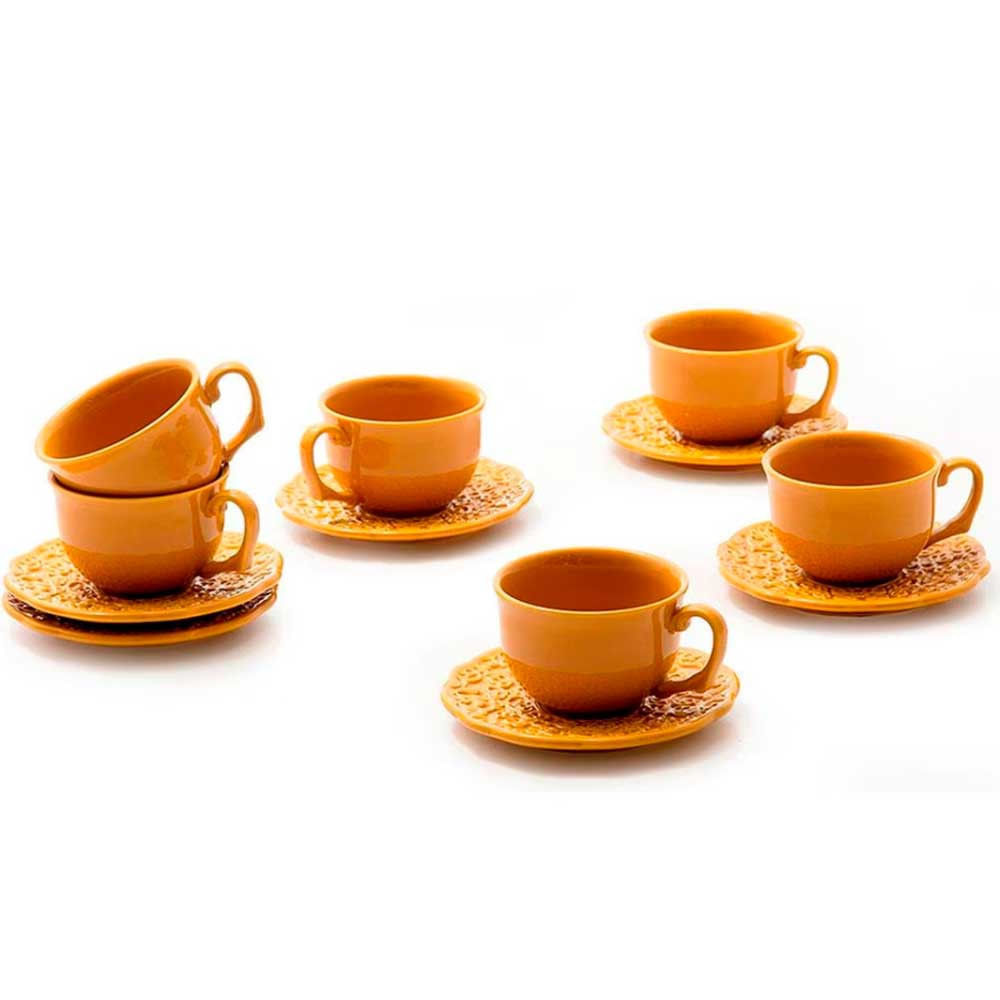 Conjunto com 6 Xícaras e Pires para Chá Porto Brasil Marrakech Especiarias: Curry em Cerâmica Feldspática - 260 ml Amarelo