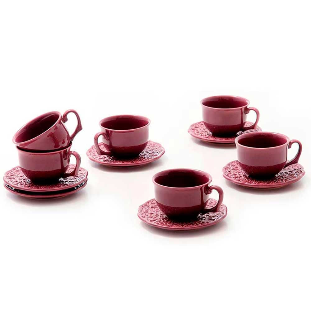 Com 6 xícaras e 6 pires: total de 12 peças