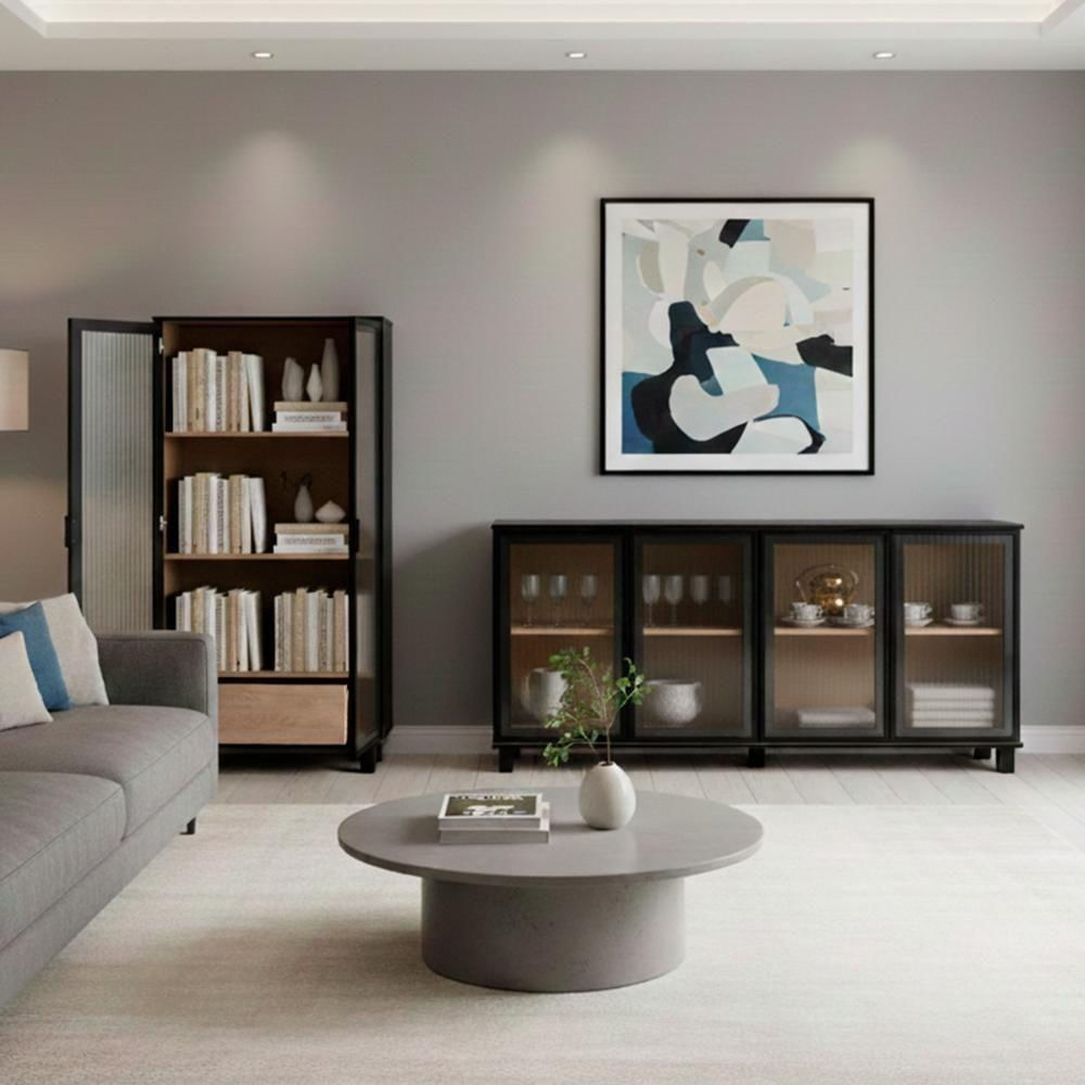 - Possui 4 portas com acabamento em vidro canelado