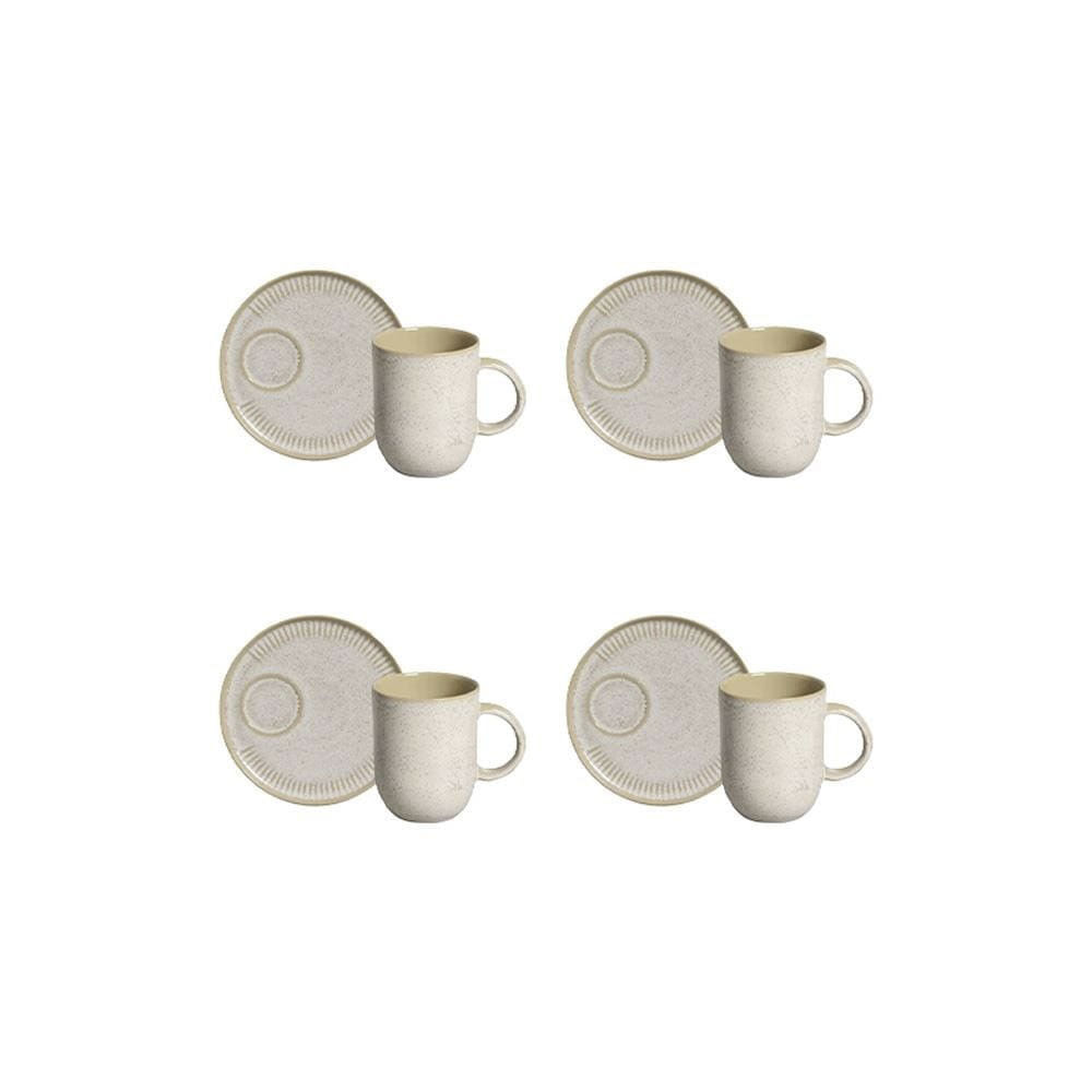01 Conjunto com 4 Canecas e Pires Porto Brasil Coup Stoneware Latte Off White 330ml