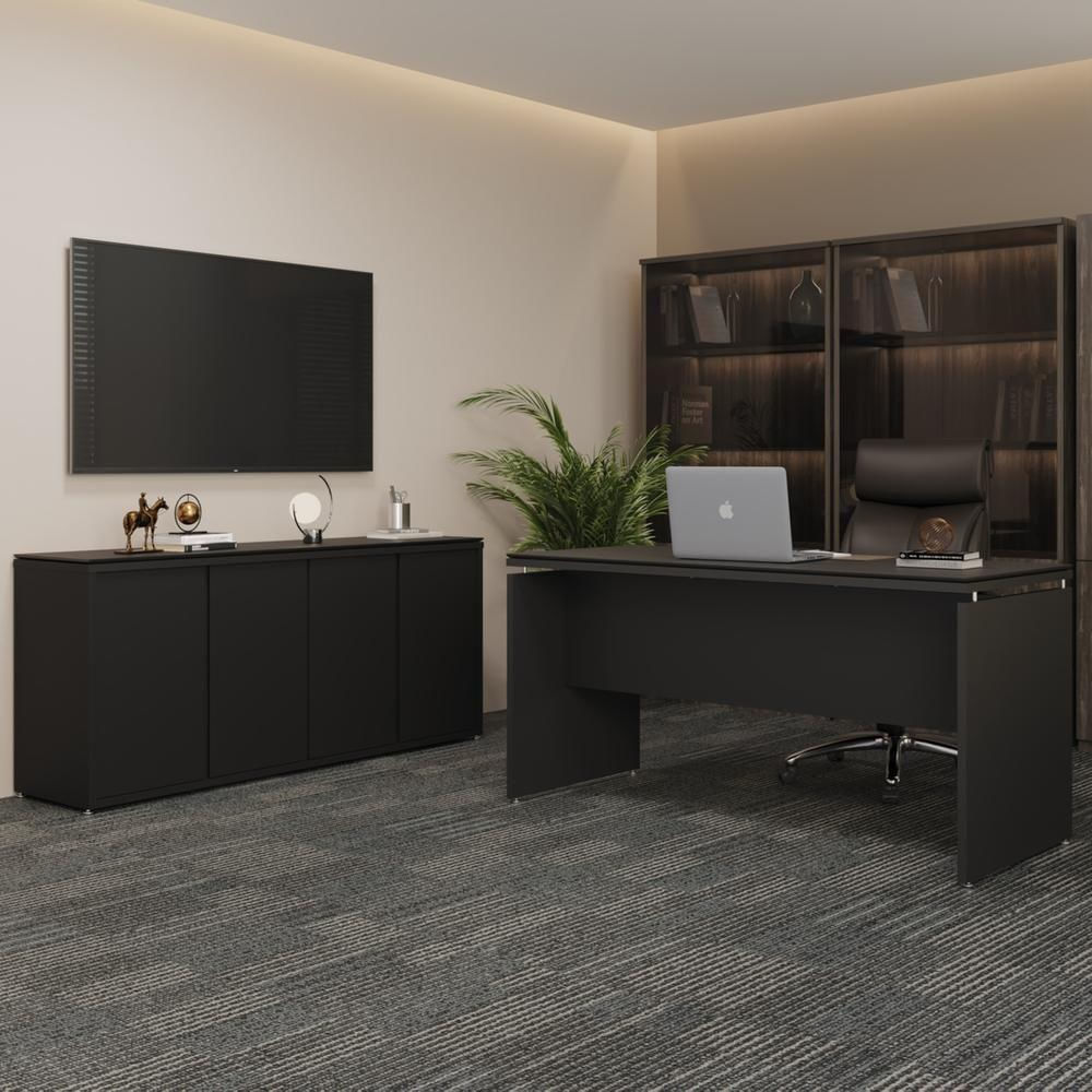 Conjunto De Escritório Office 2 Peças Mesa E Balcão Buffet T - Preto Preto