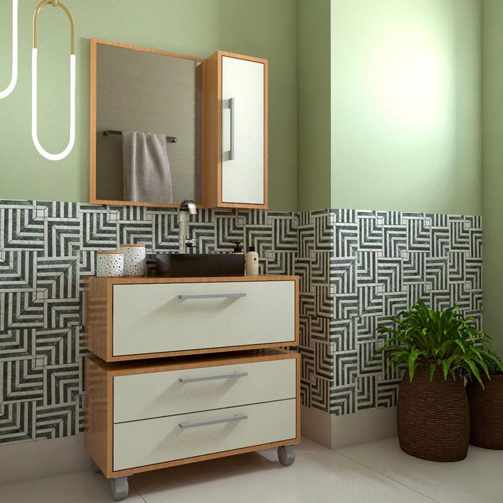 Conjunto de Gabinete Suspenso com Cuba Preta, Gabinete de Chão e Armário de Banheiro com Espelho Alice 2 PT 2 GV Mel e Arenas