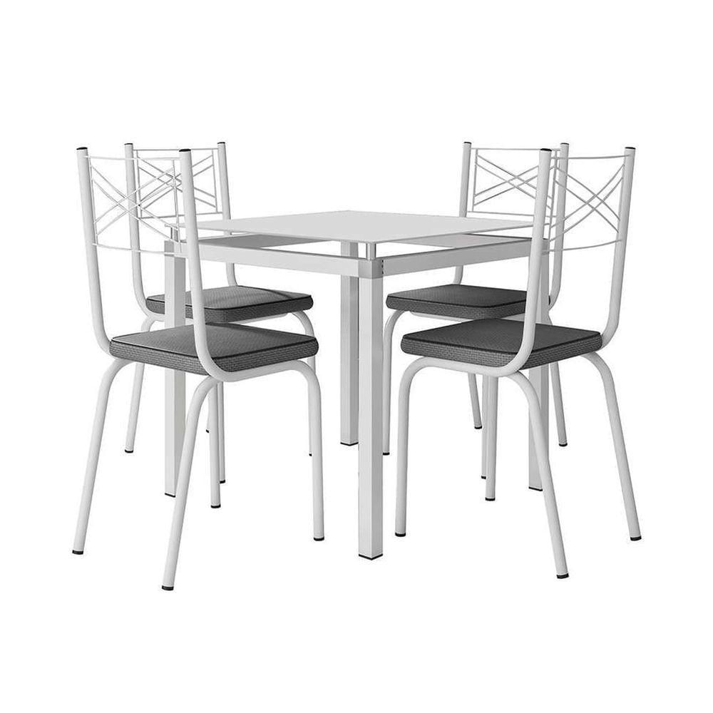 Conjunto de Jantar Malva 75 cm 4 Lugares Tampo de Vidro com Cadeiras 119 Branco Platina