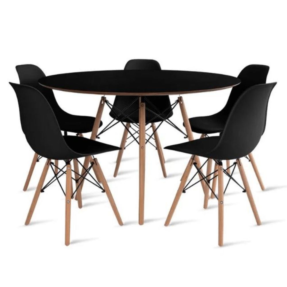 Conjunto de Mesa de Jantar Eames Eiffel Redonda 100cm Tampo de Madeira Preto com 5 Cadeiras Pretas