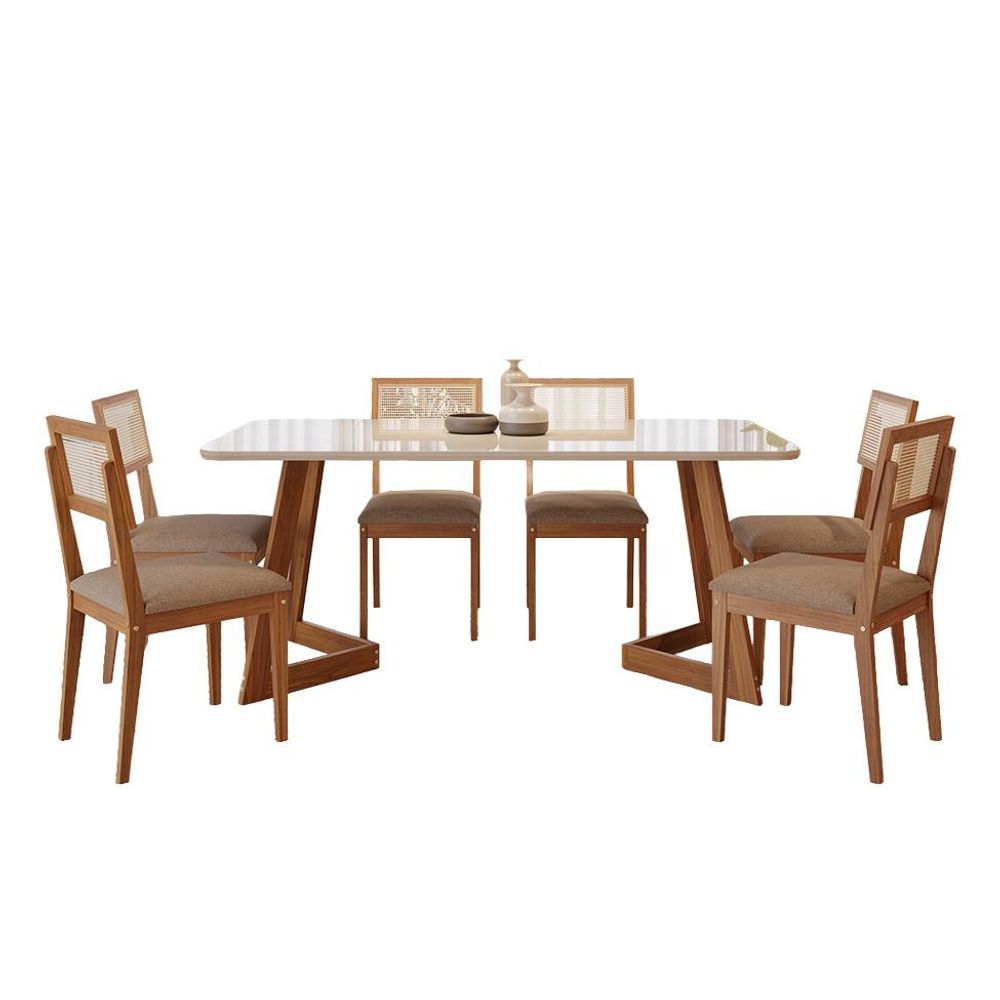 Conjunto de Mesa Retangular com Tampo de Vidro Caju e 6 Cadeiras Palmas Linho Marrom e Cinamomo