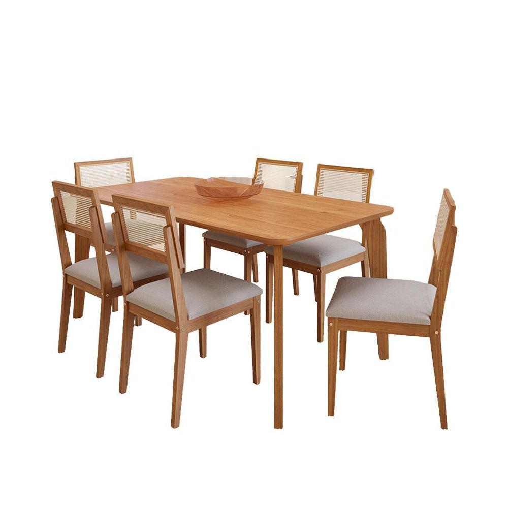 Conjunto de Mesa Retangular com Tampo MDF Papaia e 6 Cadeiras Palmas Linho Bege e Cinamomo