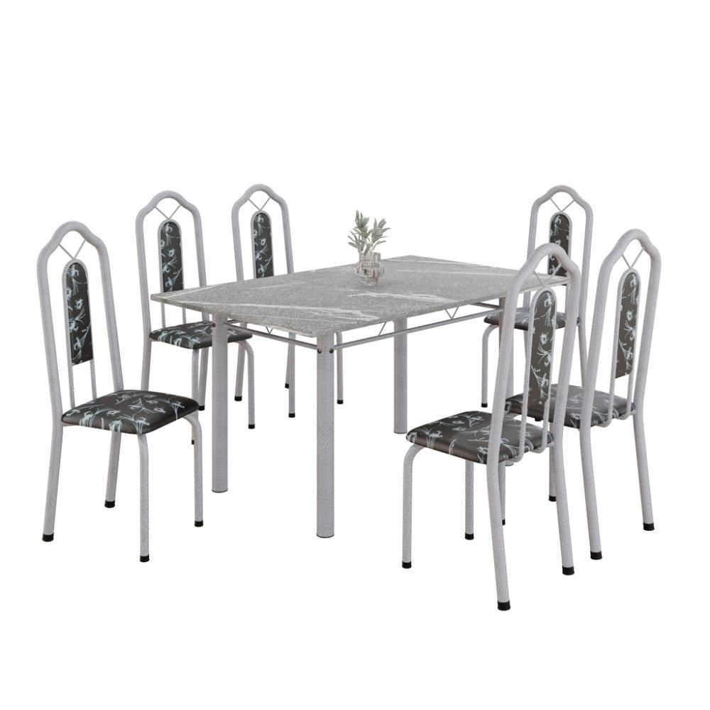 Conjunto De Mesa Tubular Com 6 Cad 140x75cm Tampo Em Granito Topázio Brenda 010 - Mart Pérola