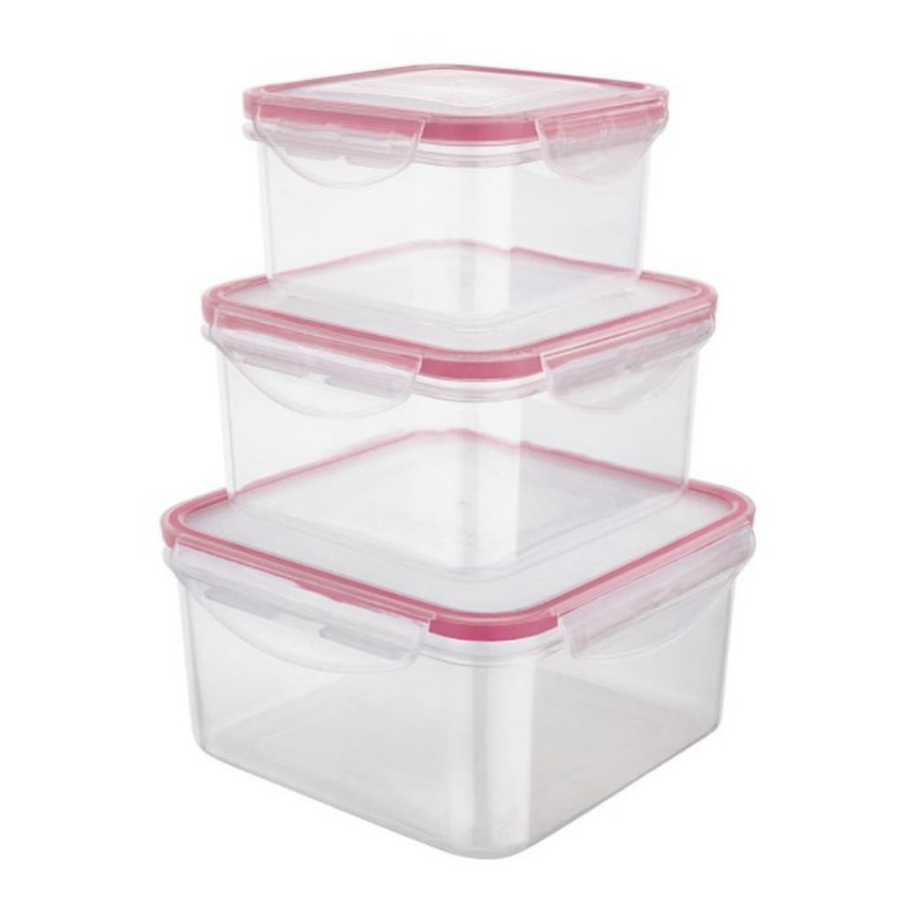 Conjunto de Potes Herméticos Quadrados Euro Home PLA3666-VM em Plástico 3 Peças Vermelho com Transparente