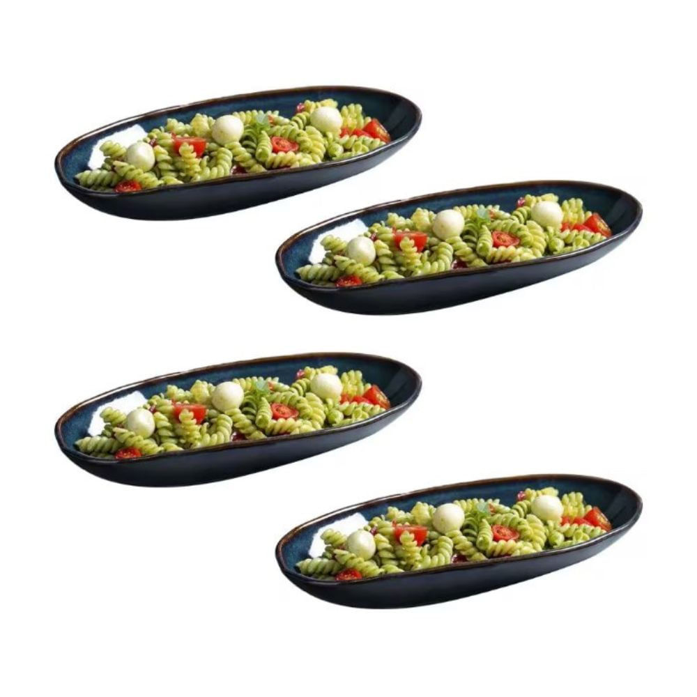 Conjunto de Travessas Ovais Grandes Porto Brasil Orgânico Oceano 32x16cm - 4 Peças Azul