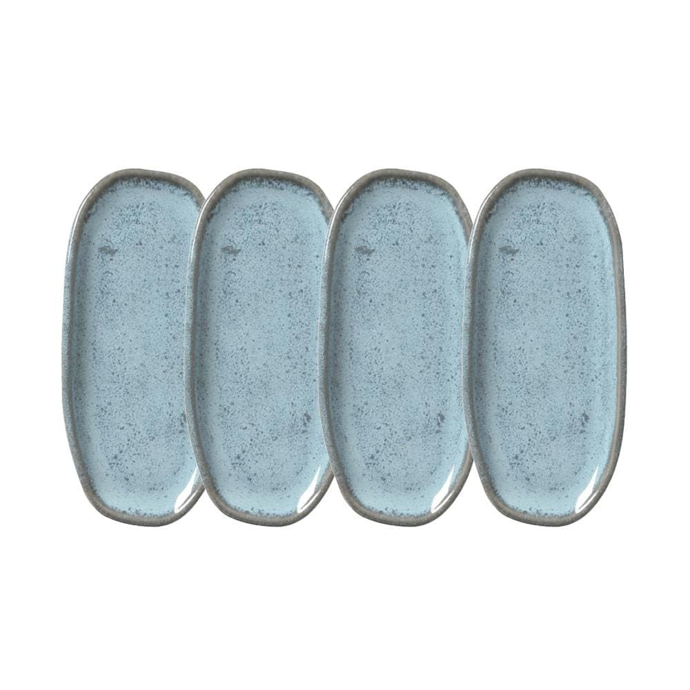 Conjunto de Travessas Oval Rasa Mini Porto Brasil Orgânico Breeze 16,5x8cm - 4 Peças Azul