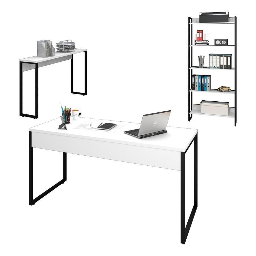 Conjunto Escritório Mesa 150 Aparador E Estante Studio Industrial M18 Branco - Mpozenato