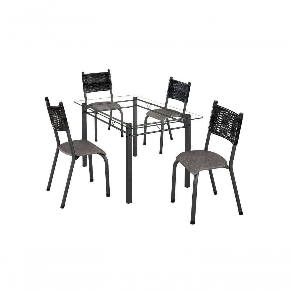Conjunto França 04 Cadeiras Com Base Piauí Bm Tubulares Vidro Incolor-ratan Preto-courino C124