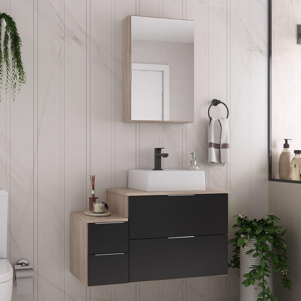 Conjunto Gabinete Banheiro Nivus 80 (gabinete+espelheira+cuba) Madeirado Preto