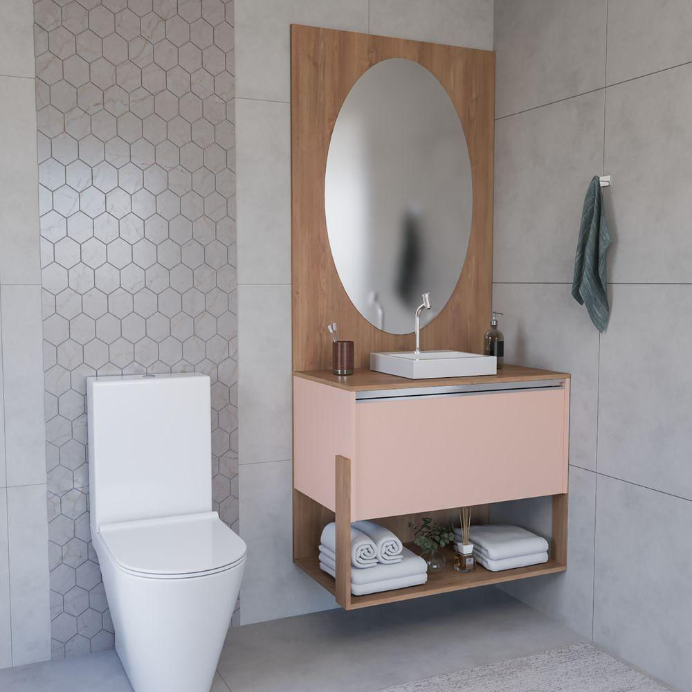 Conjunto Gabinete E Espelheira Plena Superior 100cm Nogal Sevilha Salmão