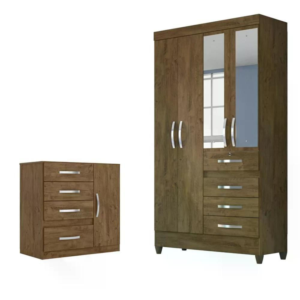 Conjunto Guarda Roupa Sobral Com Espelho Com Cômoda Vênus - Castanho Wood Castanho Wood