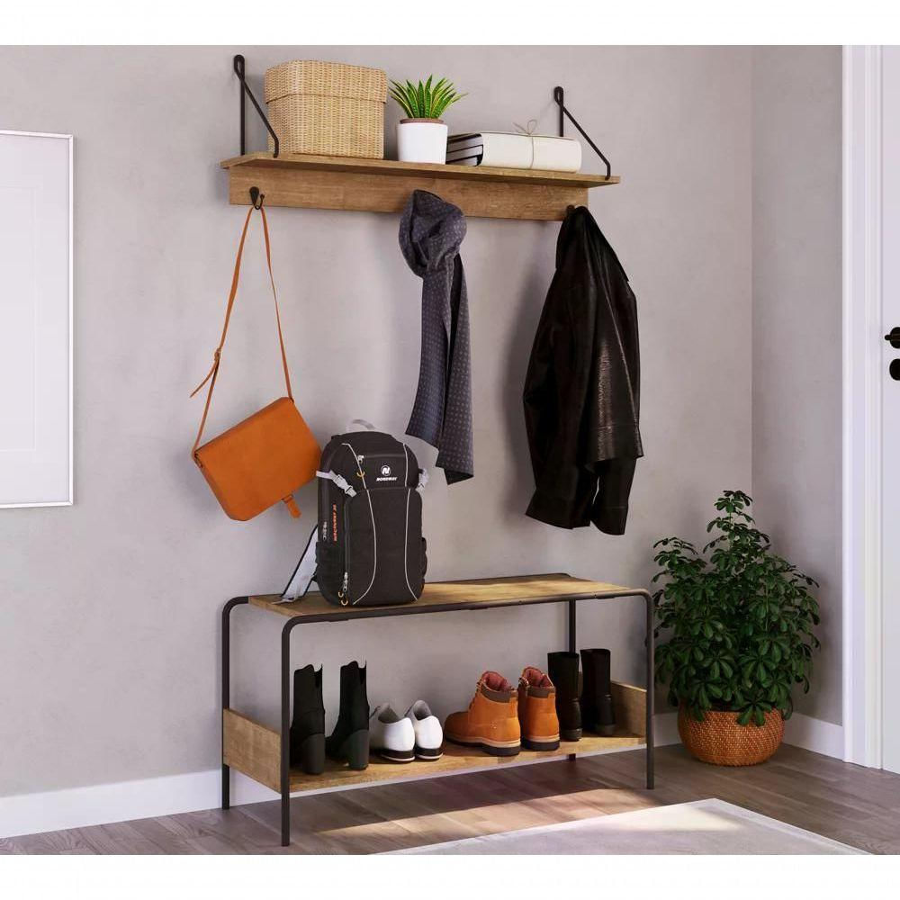 Conjunto Hall De Entrada Banco E Prateleira 27896 Linha Tube Vermont Preto Artesano Vermont Preto Fosco Conjunto Banco E Prateleira para porta de entrada. Com um design moderno e elegante, ideal para manter sua entrada, sala ou quarto organizado e livre de desordem. Banco com estrutura metálica em aço carbono de tubo redondo de diâmetro 15mm e pintura epóxi anticorrosiva fosca. Prateleiras em MDP de 15mm, acabamento em pintura BP na cor Vermont (Fosco). Prateleira conta com suporte em arame metálico com 8mm e 3 ganchos. Banco possui ponteira plástica no tubo para não riscar o piso, proporciona conforto para você calçar e descalçar seus sapatos e ainda proteger sua casa da contaminação trazida da rua. Mais produtos da Artesano, você encontra em nosso site, podendo fazer a composição completa para sua casa, são diversos itens com design prático e funcional para tornar a sua vida mais facil, a casa mais alegre e o conforto mais próximo. Este móvel chegará em sua casa separado em 02 volumes.