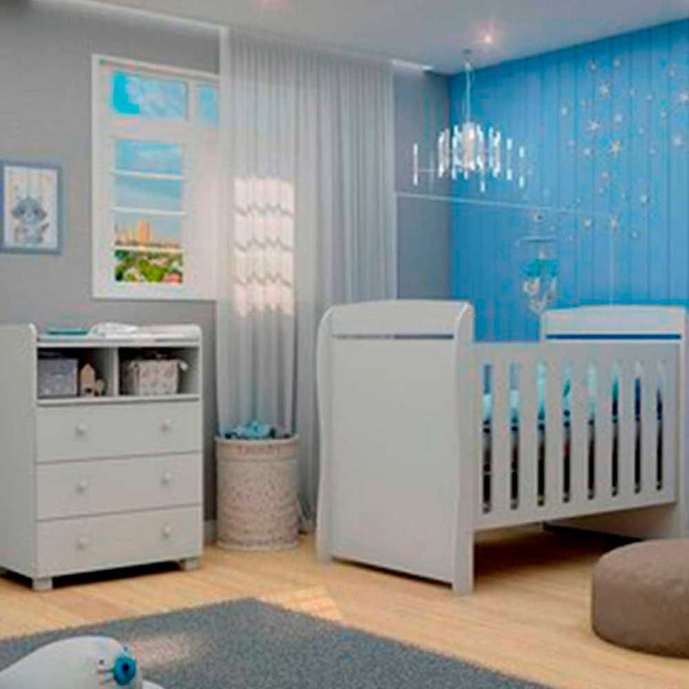 Conjunto Infantil com Berço Estrela e Cômoda Lua Gelius Branco Acetinado