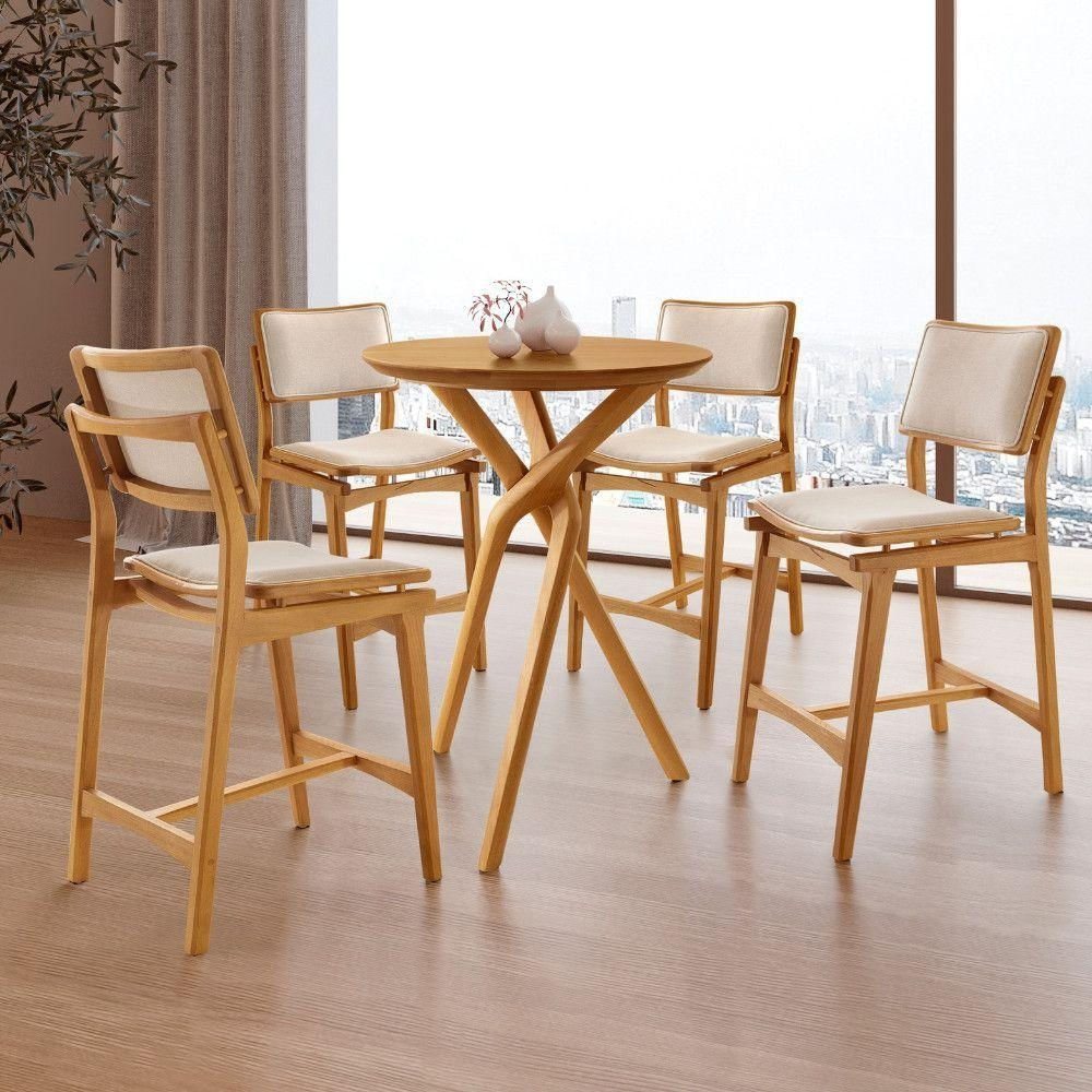Conjunto Mesa Bistrô Ballare Tampo Redondo E 4 Banquetas Eva Linho Off/imbuia Nat/cinam. Imbuia