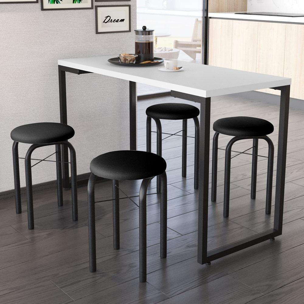 Conjunto Mesa De Cozinha Prattica Industrial 120cm Com 4 Banquetas F02 Branco/preto - Mpozenato