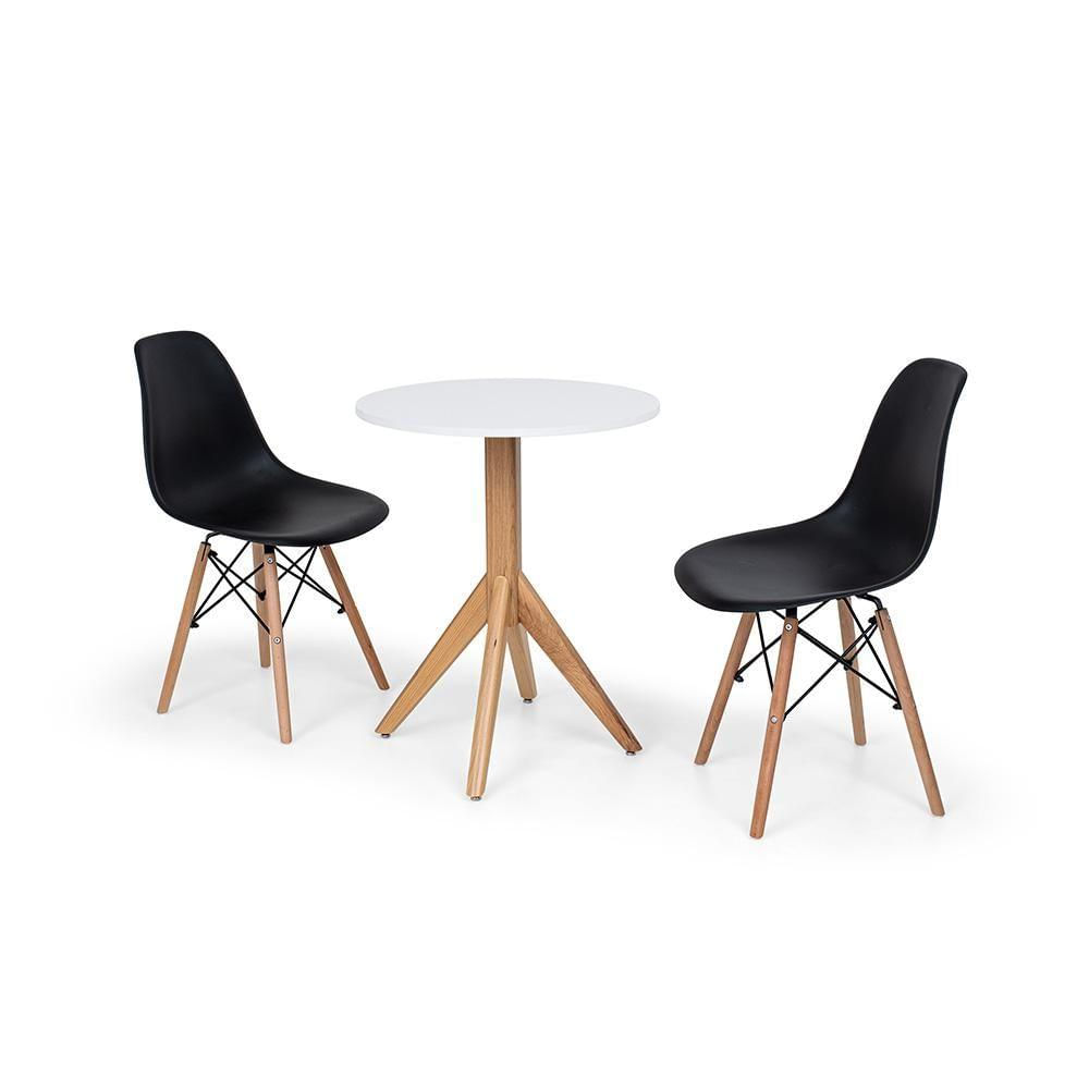 Conjunto Mesa de Jantar Maitê 60cm Branca com 2 Cadeiras Charles Eames PretaCor: Branco