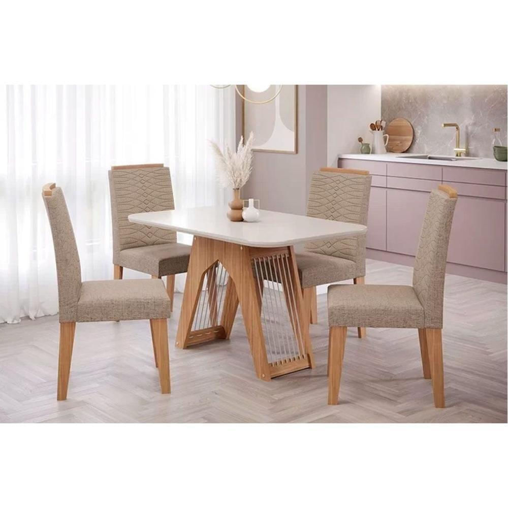 Conjunto Mesa Sala Jantar Carol Tampo Madeirado Com Vidro 130x80cm E 4 Cadeiras Clarice Madeirado Linho Bege Cimol