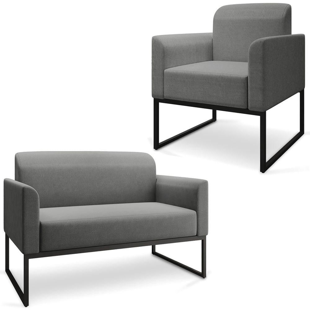 Conjunto Namoradeira E Poltrona Linho Grafite/Preto