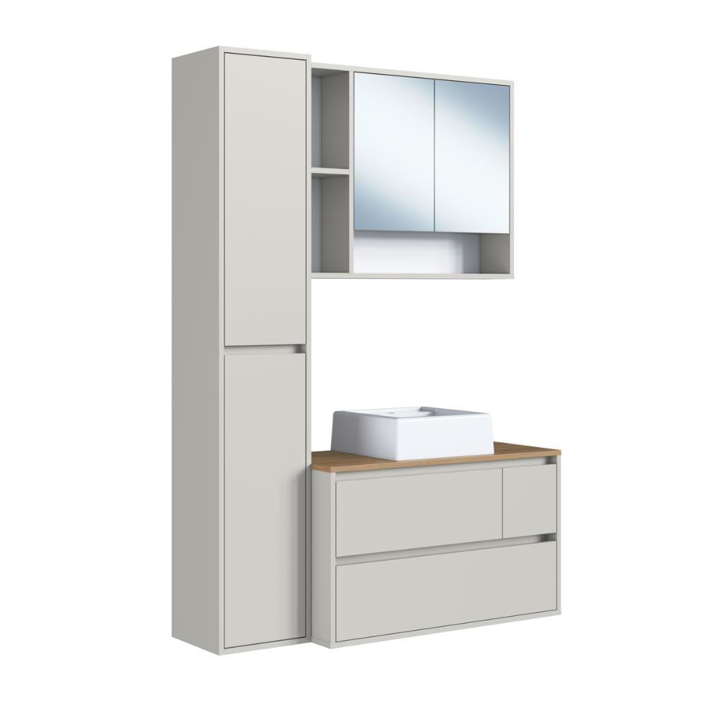 Conjunto para Banheiro 108cm com 3 Peças Gabinete Suspenso Belarus Arenas com Cuba Branca