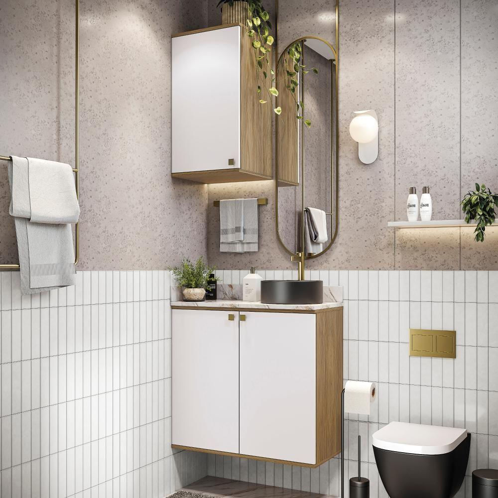 Conjunto Para Banheiro Com Aéreo Kappesberg Celeste 2 Peças Nogueria/branco 80cm