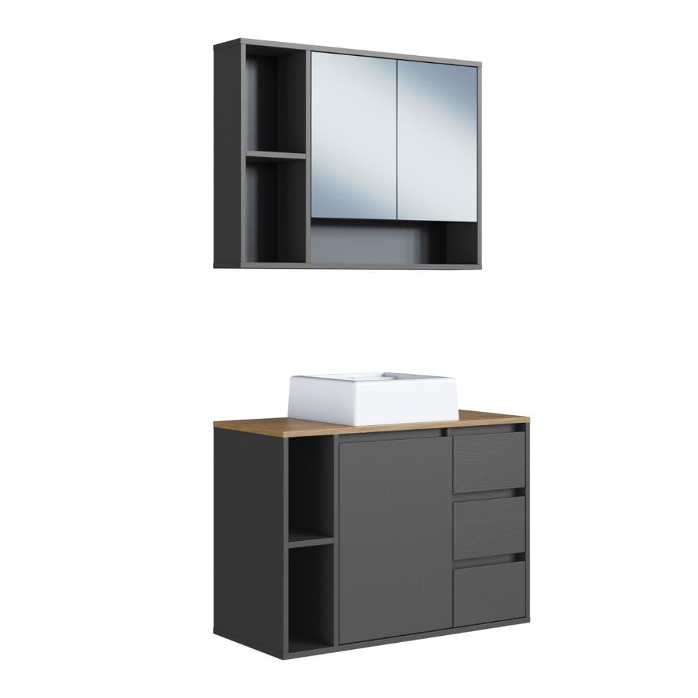 Conjunto para Banheiro Gabinete Suspenso 80 Belagavi com Cuba e Espelheira Grafite